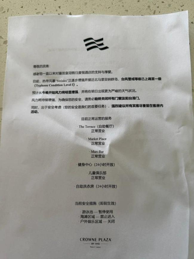 滞留塞班岛游客称航班已取消三四次 超强台风“森拉克”来袭 关键词: 2026-04-15 14:09:05  封面新闻 今年第4号台风“森拉克”于北京时间4月12日凌晨加强为超强台风级,13日上午8时,其中心位于美国关岛东偏南方向约470公里的西北太平洋洋面上,中心附近最大风力达到17级以上(70米/秒)。目前,“森拉克”大概率正面袭击塞班岛,其强度甚至可能超过八年前的“玉兔”。北京游客涂女士因连续两次航班取消滞留在塞班岛。她表示,现在只能待在酒店,物资充足但不知道何时能离开。和涂女士同住一个酒店的二十多名中国游客建了一个互助群,彼此分享信息,相互安慰。4月12日早上,涂女士得知航班取消后立即改签了香港航空13日凌晨的一班飞机,但下午5点过,这趟航班也取消了。所有游客都滞留在岛上。涂女士续订了房间,意外发现酒店价格比之前便宜了10%。住在同一酒店的吴女士也表示,价格较平时降低了20%,总体来说比较合理。13日一早,酒店广播开始用各种语言播报安全提醒。地陪联系上涂女士并带她去附近超市采购物资。中午时分,天气阴沉,风力只有三四级,但酒店大堂及每层楼的玻璃窗户已加上防护,游泳池、海滩区域以及户外娱乐区域均已关闭。涂女士和其他中国游客通过互助群分享最新消息,减轻紧张情绪。涂女士一直在关注航班信息,希望17日可以顺利离开。